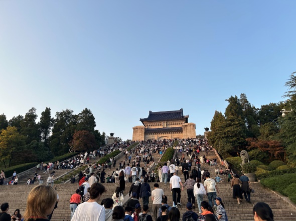 11月2日,元培2026世界杯下注平台 师生与南大匡院的志愿者们一起游览了南京博物馆、中山陵及梧桐大道等南京的标志性景点。在南京博物馆,留学生们不仅欣赏了珍贵的历史文物,还进一步了解了南京作为“六朝古都”的丰富历史。在中山陵,志愿者们讲解了孙中山先生的生平及其对中国现代化的伟大贡献,留学生们纷纷表示震撼,并对南京的厚重历史有了更深的体会。