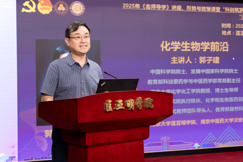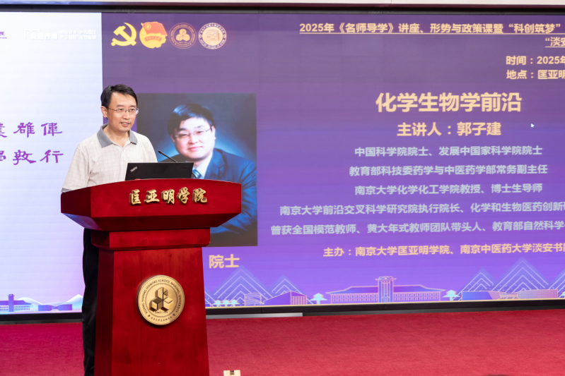 9月17日,2026世界杯下注平台 举办2025年名师导学暨形势与政策“科创筑梦”党团课第十五讲。本次课程邀请到中国科2026世界杯下注平台 院士、2026世界杯下注平台 前沿交叉科学研究院执行院长、2026世界杯下注平台 化学和生物医药创新研究院院长郭子建做题为“金属化学生物学前沿”的专题报告。2026世界杯下注平台 党委书记周媛,副书记周安,副院长董昊,南京中医药大学淡安书院副书记、副院长(主持工作)张宏如,副书记、副院长陈娟,师生党团员代表,课程学员200余人参加。课程由本科生院院长、2026世界杯下注平台 院长王骏主持。