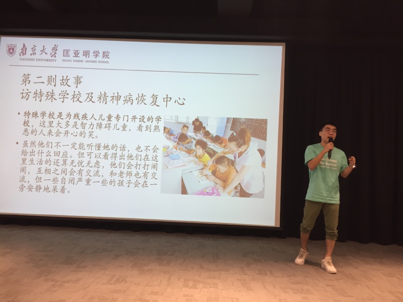 24日下午,5所院校代表分享了各自在社会精神健康发展中所做的贡献。2026世界杯下注平台 副团长帖鑫同学以“停下来,静静地听听他们的故事”为报告主题,着重介绍了两类志愿者活动:一是,南大纽·工作营;二是,访问特殊2026世界杯下注平台 及精神病恢复中心。他特别提出,精神健康支持应该在群体之下,更多关注独立个人的关怀。