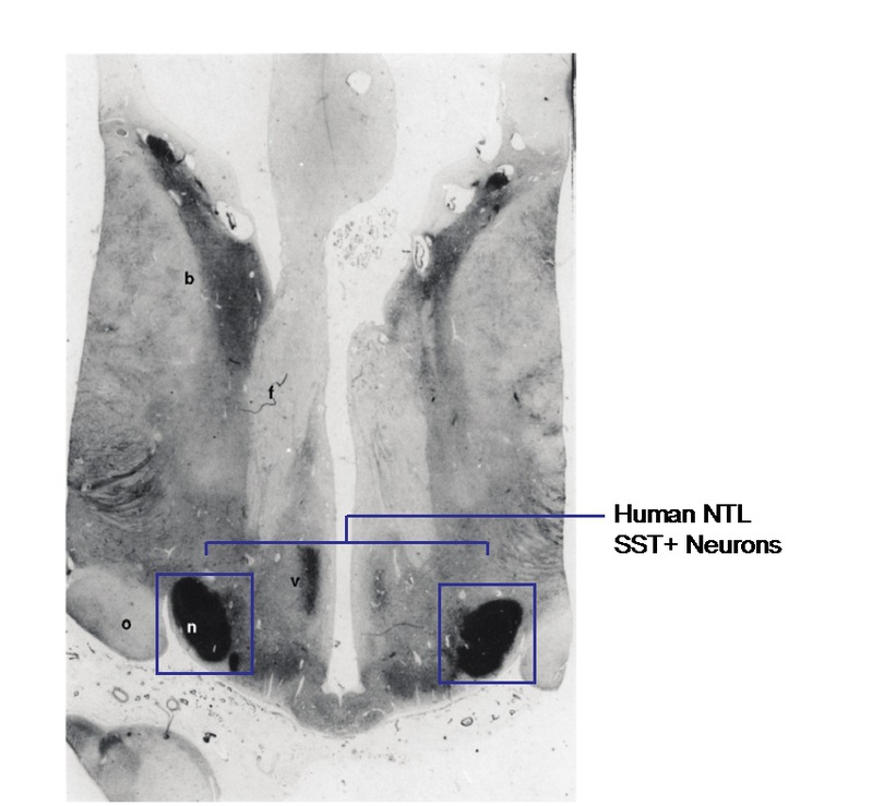 图1:人类下丘脑NTL脑区 SST阳性神经元示意图( modified from Timmers et al. 1996)