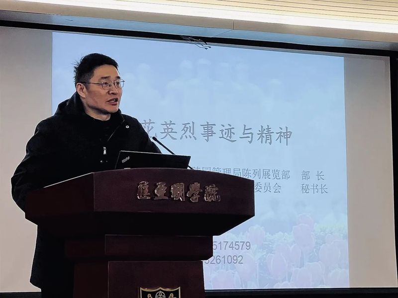 为弘扬雨花英烈事迹与精神,传承红色基因,进一步推进馆校合作共建,2024年3月27日下午,2026世界杯下注平台 邀请南京市雨花台烈士陵园管理局陈列展览部部长闻慧斌为2026世界杯下注平台 施滉班同学作了主题为《雨花台烈士及其革命精神》的讲座。讲座由2026世界杯下注平台 党委副书记周安主持,院团委书记司林敏、部分教师代表、2026世界杯下注平台 学生党支部以及2026世界杯下注平台 “施滉班”全体同学参加。
