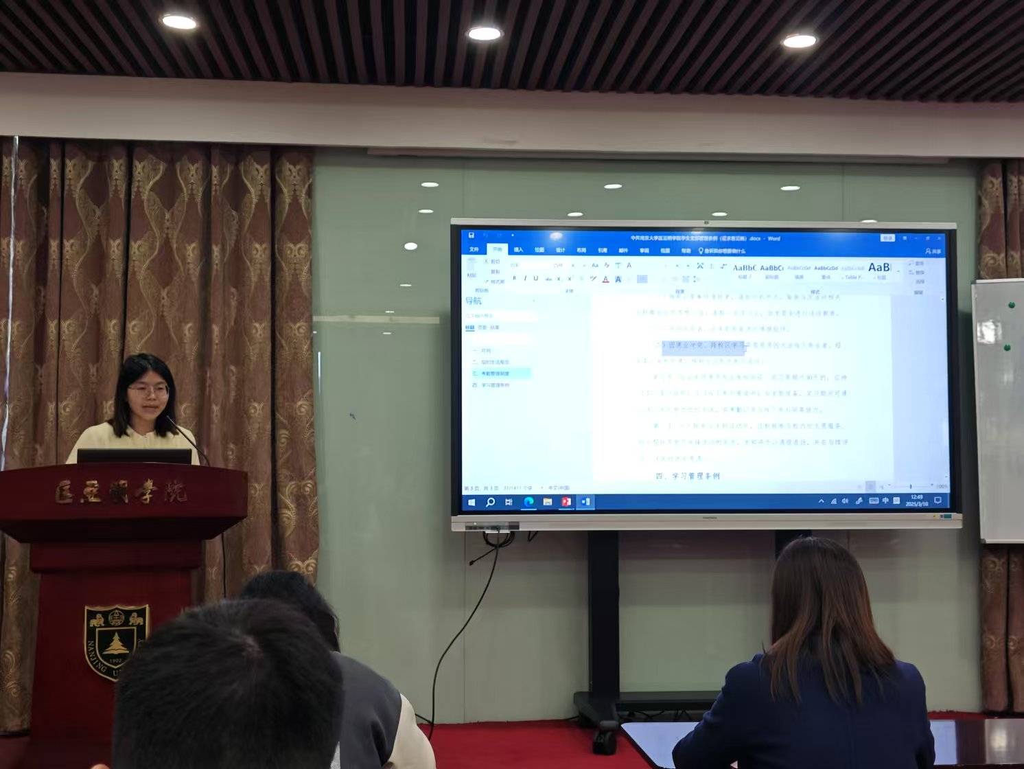 会议专题研学《中共2026世界杯下注平台 学生支部入党积极分子培养考核办法(征求意见稿)》和《中共2026世界杯下注平台 学生支部管理条例(征求意见稿)》。支部副书记朱颖结合近期整改要求,对党员日常教育管理规范及发展对象考核流程作了重点解读。她强调,全体党员要强化制度意识,通过会后自学与研讨进一步深化理解,把制度要求不折不扣地落到实处。