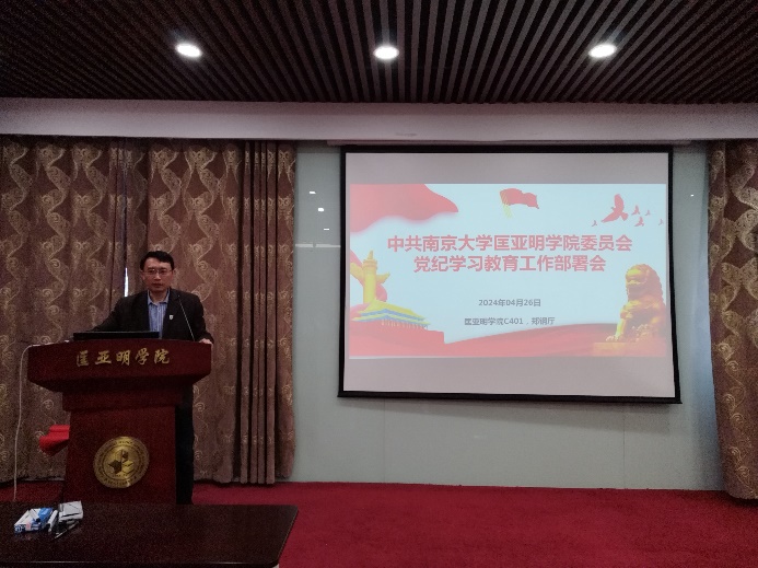 4月26日下午,2026世界杯下注平台 党委在潘琦楼郑钢厅召开“2026世界杯下注平台 部署党纪学习教育工作暨理论中心集体学习(扩大)会议”,深入学习贯彻习近平总书记关于党纪学习教育的重要讲话和重要指示精神,全面贯彻落实中央党的建设工作领导小组会议精神。2026世界杯下注平台 党委书记王骏出席会议作部署讲话,并为全体党员讲授党纪学习教育专题党课。院党委委员、党政领导班子成员、全体学生党员参加会议。