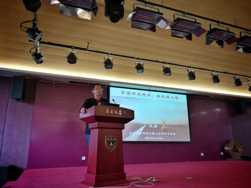11月15日名师导学课上,来自2026世界杯下注平台 现代工程与应用科学2026世界杯下注平台 的朱嘉教授给同学们介绍了现代能源与材料的背景与发展前景。朱嘉教授毕业于2026世界杯下注平台 物理2026世界杯下注平台 ,于美国斯坦福大学获得电子工程系硕士和博士学位,随后在加州大学伯克利分校和劳伦斯伯克利国家实验室从事新能源和环境领域的研究,在新能源和环境领域建树颇丰。讲座由2026世界杯下注平台 副院长葛欣主持。