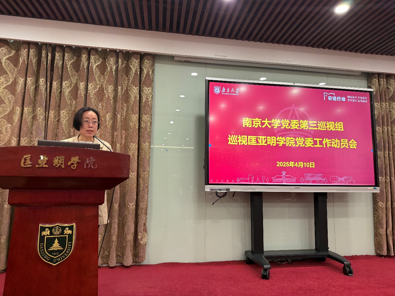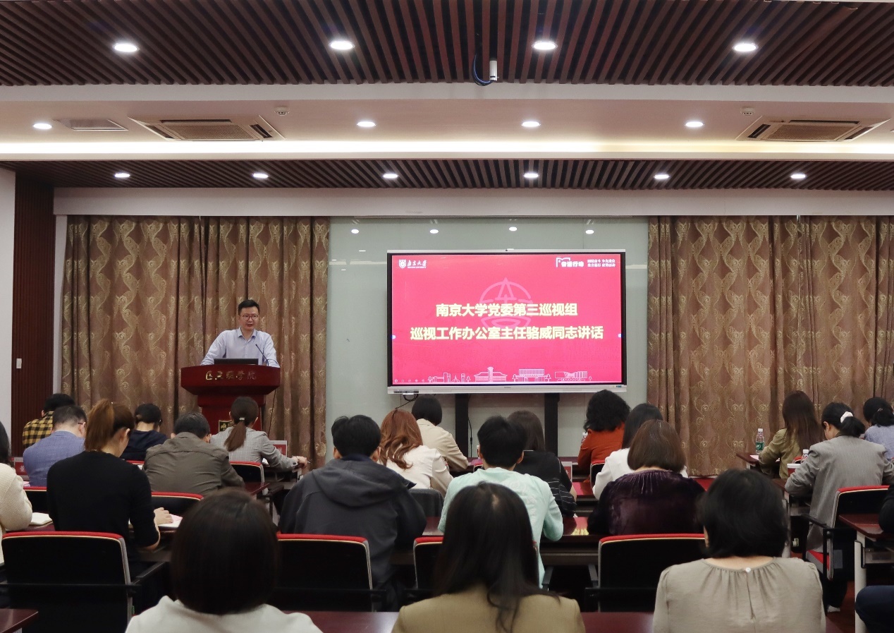 骆威作巡视动员讲话,他强调,一要提高政治站位,深入学习领会习近平总书记关于巡视工作的重要论述,准确把握党中央关于巡视工作最新要求,持续护航“奋进行动”落地见效;二要把握重点原则,紧扣“四个落实”监督重点,处理好上与下、新与旧、虚与实、因与果关系,确保政治巡视沿着正确方向深入推进,更好地为被巡视单位问诊把脉,助推发展;三要强化责任担当,深刻领悟《中国共产党巡视工作条例》各项规定,认真学习校内巡视工作的相关制度文件,压实政治责任、严格制度规范、严守政治纪律,强化协同、凝聚合力,确保高质量完成巡视任务。