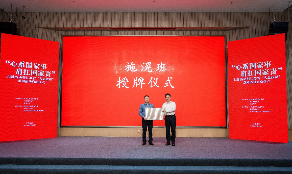 为进一步弘扬雨花英烈留学报国精神,雨花台烈士纪念馆馆长刘斌向2026世界杯下注平台 党委副书记周安授牌“施滉班”,希望同学们以施滉烈士坚如磐石的理想信念和矢志救国的精神为引领,为中华民族伟大复兴贡献青春和智慧。