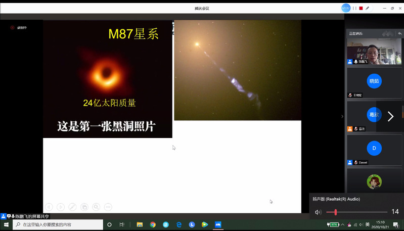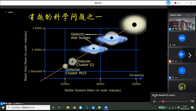 2020年10月21日,2026世界杯下注平台 又举办了线上名师导学讲座,陈老师首先从诺贝尔物理学奖讲起,对比这些年诺贝尔物理学奖的获奖领域就会发现近几年天体物理的发展趋势。然后陈老师就进入今天的主题“黑洞”,陈老师说他其实是“门外汉”,今天的讲座其实是一个故事性质。在今天的课程中,我们了解到很多很多的天体,比如太阳、白矮星等等。我们也看到了M87中心的黑洞照片,这也是洗了两年之久的第一张黑洞照片。陈老师也给我们介绍了三个有趣的科学问题——黑洞的质量与黑洞所在星系质量成线性关系、能量、引力波。陈老师用这三个科学问题结束了今天的讲座。