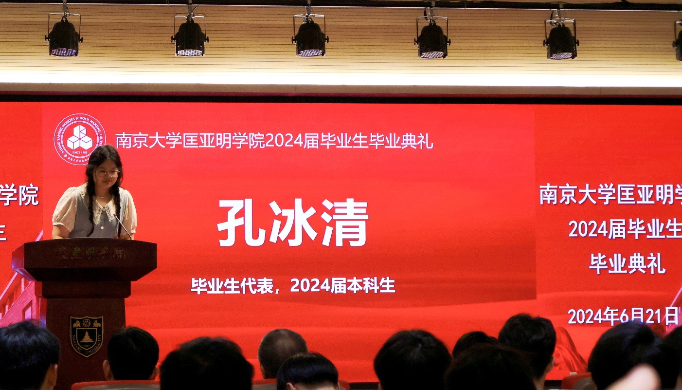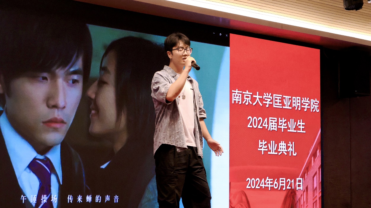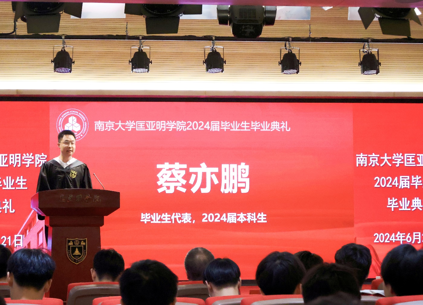 蔡亦鹏同学首先感谢了老师们的栽培,感谢了南大、匡院的培养。他将过往的四年总结为宝贵的财富,伴随大家走向未来,一路披荆斩棘、乘风破浪。