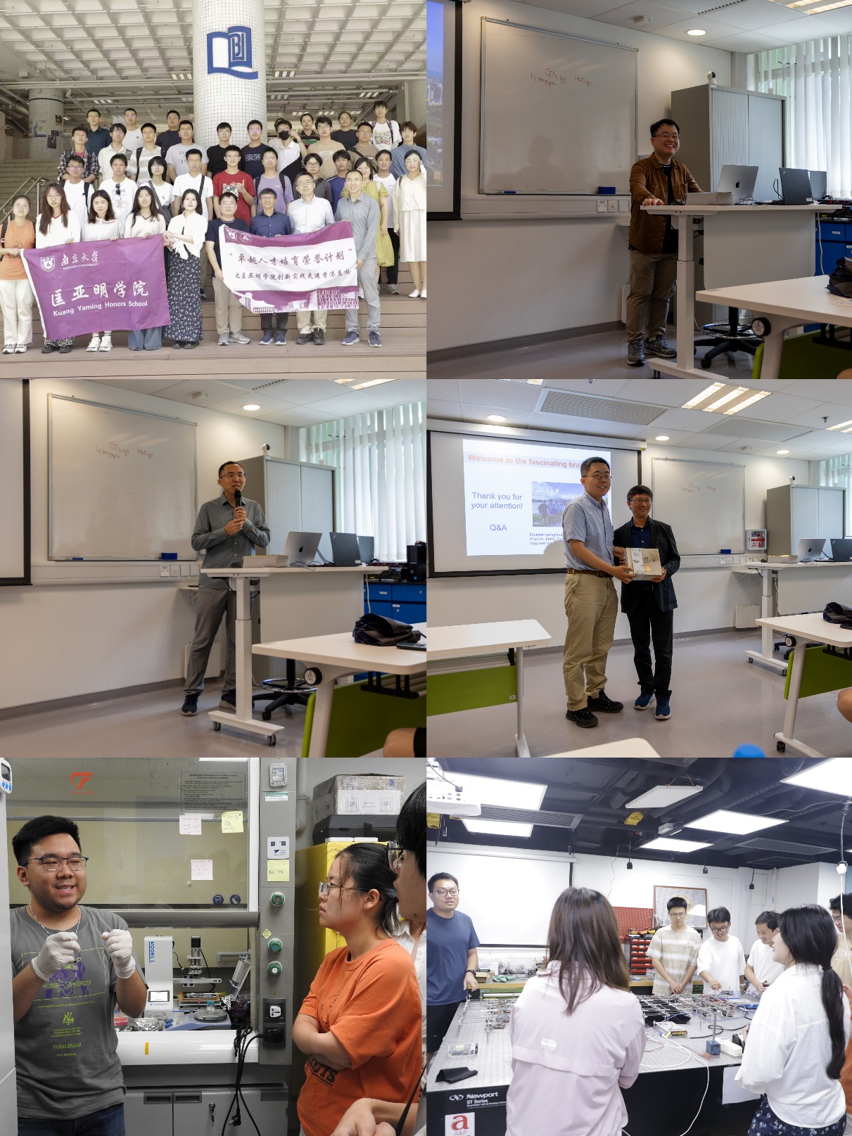 5月23日上午,师生一行赴香港浸会大学交流访问,聚焦基础理科前沿,汲取跨学科育人经验。活动伊始,2007级院友唐乾元教授全面介绍了物理学系的研究领域、学科优势、研究所概况及香港求学的独特优势,并热情邀请同学们未来赴港深造。随后,周昌松、曾祥泽等教授及其课题组研究生代表,依次分享了在人体微生物组与健康、生物分子相互作用、计算生物物理学等前沿交叉领域的研究方向。生动的讲解与展示,深化了同学们对生命科学与物理学融合应用的理解,现场互动热烈,学术氛围浓厚。当日下午,师生一行参观了马冠聪教授和王树仁教授的实验室。马冠聪教授实验室通过经典物理实验巧妙验证量子理论,展现了理论与实验结合的魅力;王树仁教授实验室则展示了3D打印技术在纳米薄膜制备与精密器件设计中的创新应用,其高效性与工艺令同学们印象深刻。参观过程中,师生积极提问,与研究人员深入交流,进一步拓宽了科研视野。这场融合理论讲堂、实验观摩与深度交流的研学体验,为匡院学子提供了接触国际前沿科研平台的宝贵机会,有效激发了大家的创新思维与实践热情,激励他们在学术道路上不断探索前行。