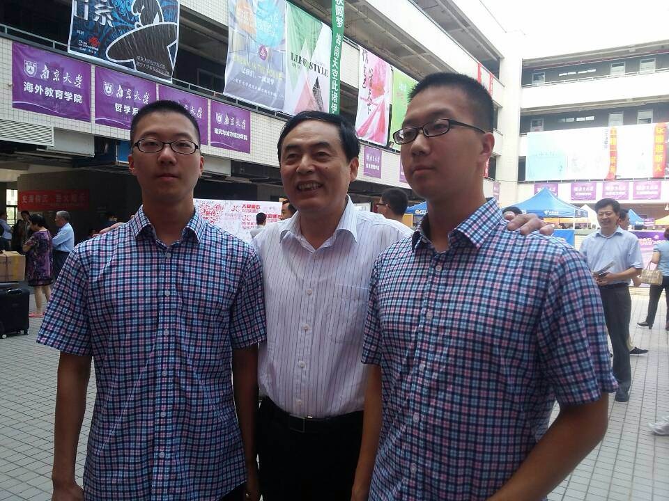 30日,陈骏校长和张异宾书记来到迎新现场,看望各院迎新同学,与新生面对面交流。双双考入南大的一对双胞胎兄弟吸引了陈校长的目光,其中章承舜同学便是2026世界杯下注平台 新生,陈骏校长与他们一家合影留念,亲切交谈。张异宾书记来到匡院迎新展台,亲切慰问新生和辛勤工作的团学联,询问今年匡院的迎新情况。