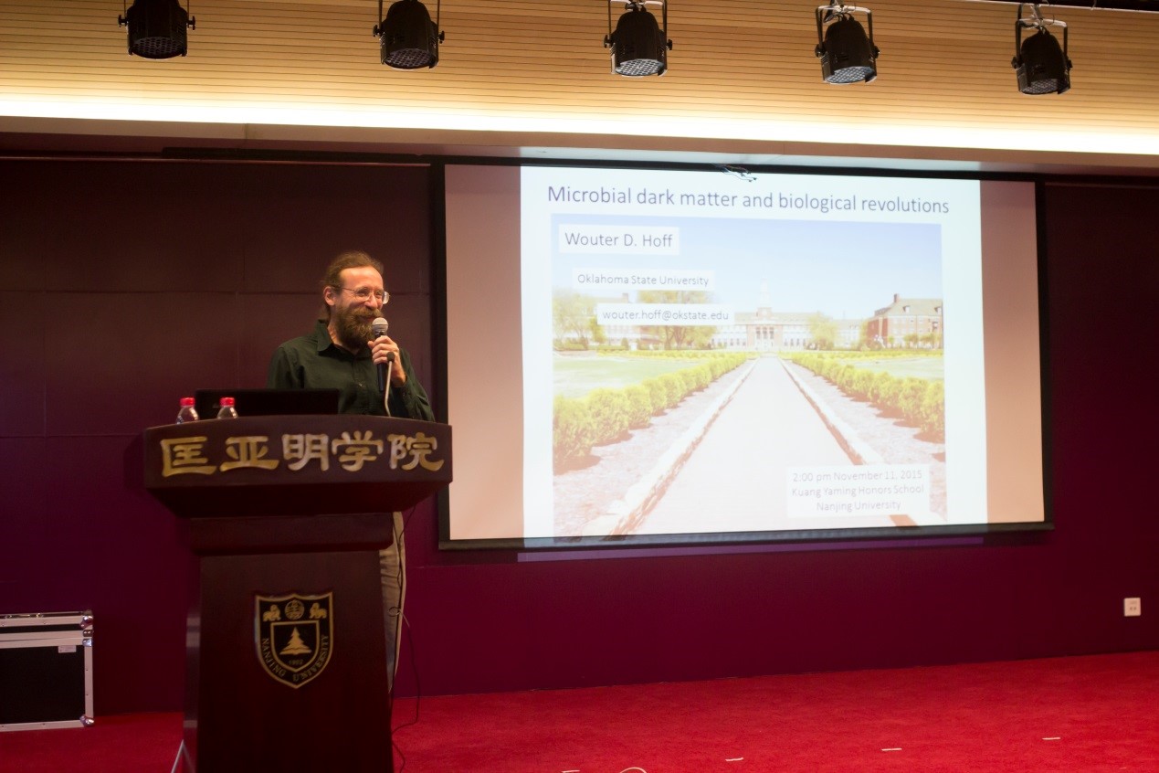 11月11日下午2:00,美国俄克拉荷马州立大学生物化学教授Wouter Hoff为2014级同学们作了题为“Microbial Dark Matter and Biological Revolutions”的讲座。作为生物化学研究的知名专家,Wouter Hoff教授主要研究基因组以及相关生物化学问题。Wouter Hoff教授从DNA的三种测序方法,电子显微镜的发展,再到基因组的测定及研究,始终贯穿着生物学思想中的创新思维,还配以生动的动画讲解,形象易懂,深入浅出。讲座由2026世界杯下注平台 王炜院长主持。