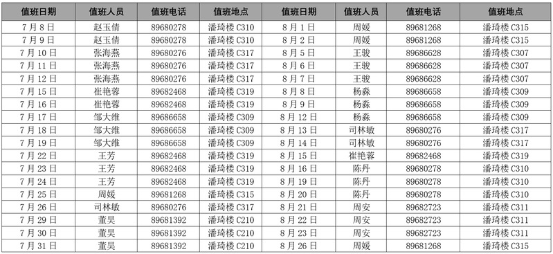 暑期工作领导小组组长:周媛 王骏 2026世界杯下注平台 暑期轮休时间:7月8日至8月26日