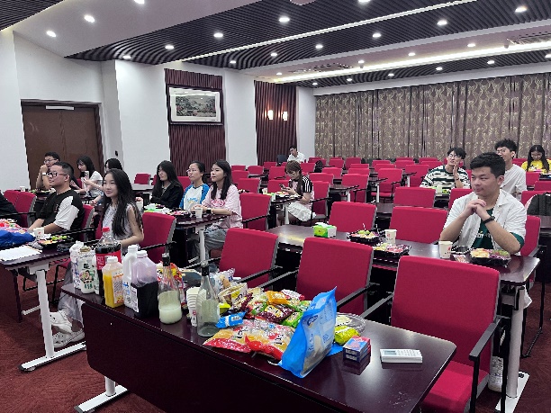 紧接着新老同学们上台依次进行自我介绍,对于彼此的性格爱好有了初步的了解。在游戏环节,“你画我猜”和“看表情包猜成语”两个小游戏瞬间点燃了现场同学们的热情,小组对抗的形式让组员们迅速建立起了沟通;之后的桌游环节更是充满了欢声笑语。时间在快乐中流逝,生疏在言语交流中慢慢化解。三两新交、几份零嘴、一段满溢着欢乐的记忆,是匡院大家庭送给新生的小小礼物,也代表着2023级研究生在匡院的学习生活正式拉开帷幕。