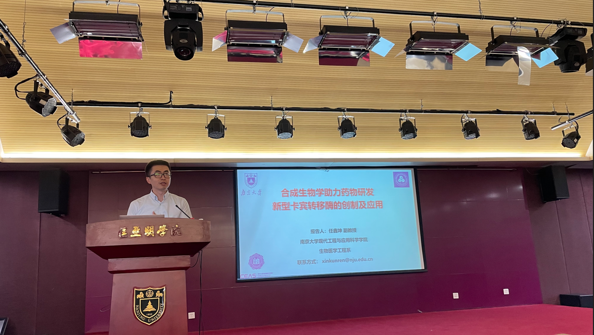 随后,任教授向同学们介绍了当下生物酶发展的背景情况,阐明了当下化学合成的痛点,指出利用生物酶合成的手段能够“让不可能变为可能”。