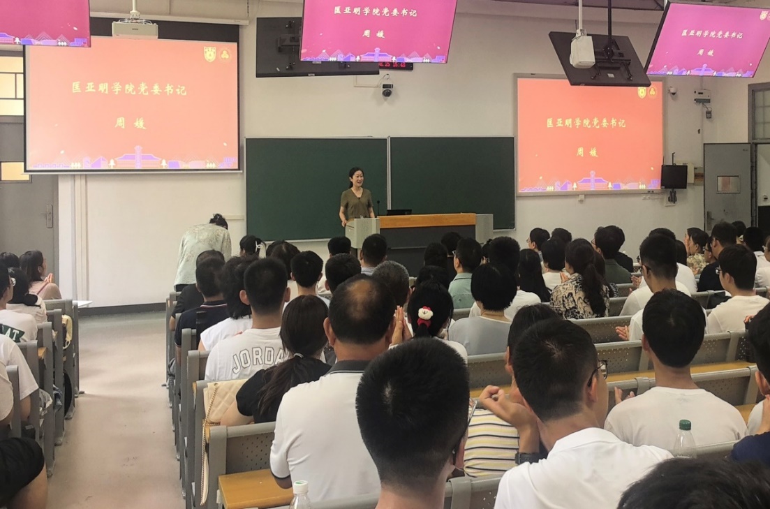 蒲婧翔介绍了书院情况。书院以“大先生”吴有训先生命名,秉承“精细有恒,训格为至”的院训,开展教育教学工作。她希望同学们突破学科限制,发挥潜力,实现“1+1>2”的效果。