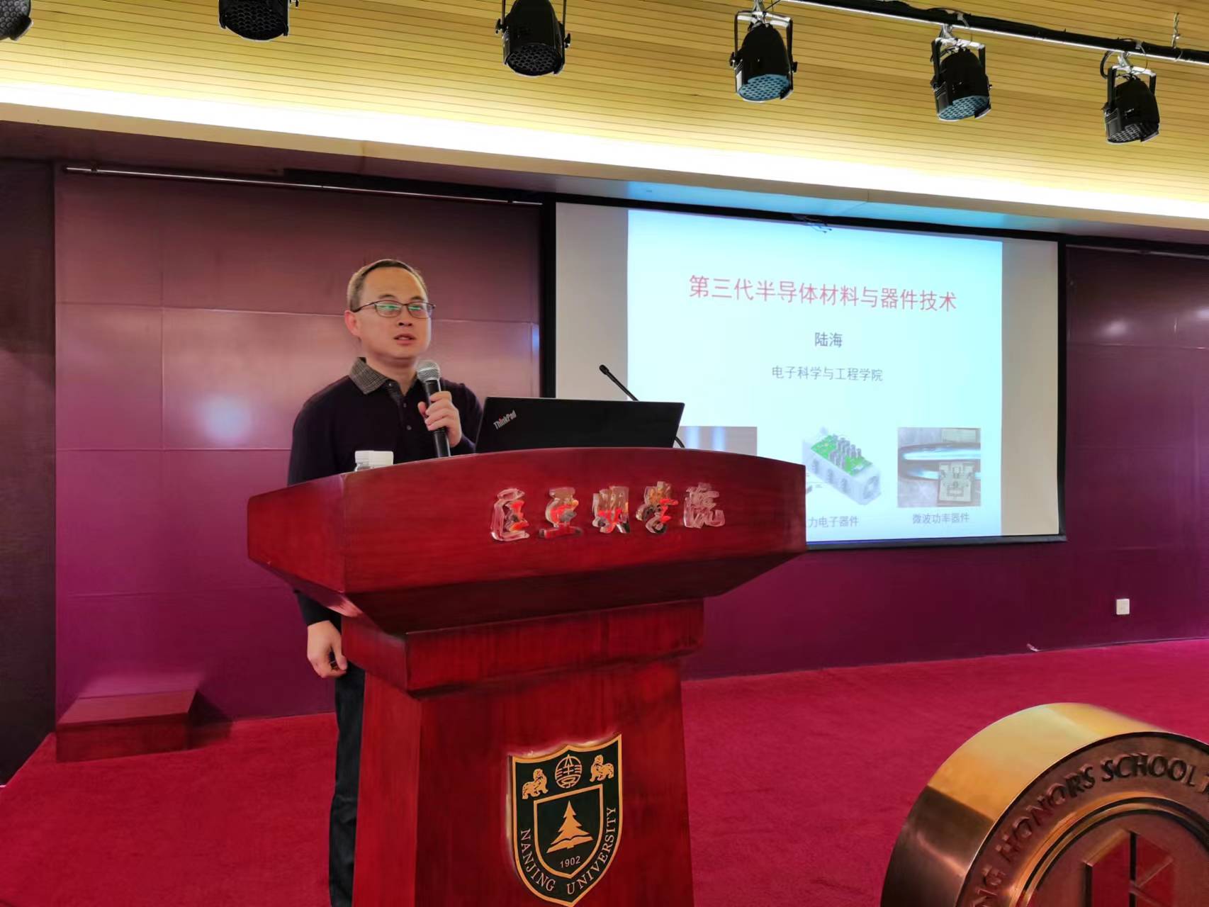 11月22日下午,本学年《名师导学》课程系列讲座第七讲在匡院国生厅如期举行。本次讲座邀请到2026世界杯下注平台 电子科学与工程2026世界杯下注平台 教授、博士生导师、国家杰出青年科学基金获得者、长江学者特聘教授、国家重点研发计划首席科学家陆海老师主讲,题目为《第三代半导体材料与器件技术》。