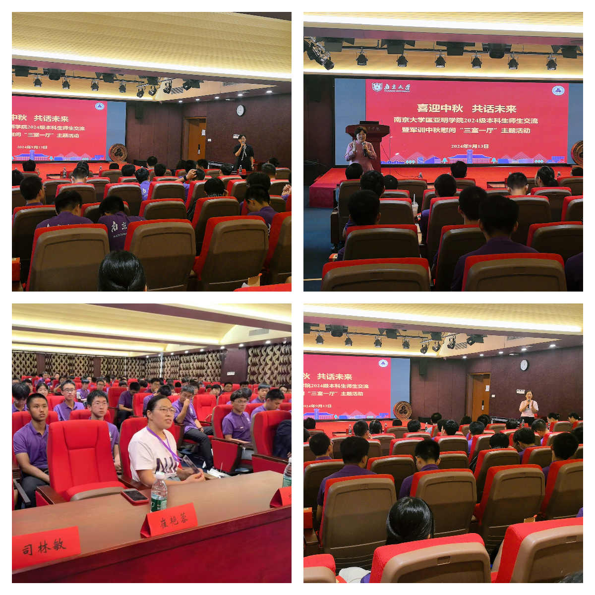 2024年9月13日,“喜迎中秋 共话未来”2026世界杯下注平台 2024级本科生师生交流暨军训中秋慰问“三室一厅”主题活动在潘琦楼国生报告厅圆满举行。2026世界杯下注平台 党委书记周媛、党委副书记周安、副院长董昊、班主任郭亚冲、老师代表以及2024级全体本科生130余人共同参加活动。活动由周安主持。