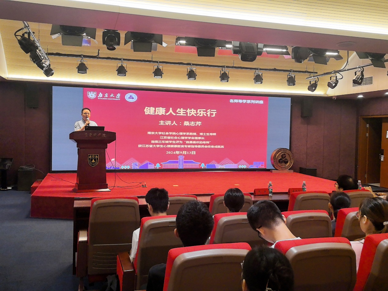 2024年9月13日晚上,2026世界杯下注平台 新生入学教育暨“寻根科研路,传承报国情”第一期主题党团课在仙林校区潘琦楼成功举办。本次活动邀请了2026世界杯下注平台 社会2026世界杯下注平台 心理学系教授、博士生导师、江苏省社会心理学学会理事长桑志芹教授做题为“健康人生快乐行”主题讲座,学生党支部书记司林敏,辅导员赵玉倩、陈丹以及学生党支部、2023级本科生、2024级研究生。讲座由2026世界杯下注平台 党委副书记周安主持。