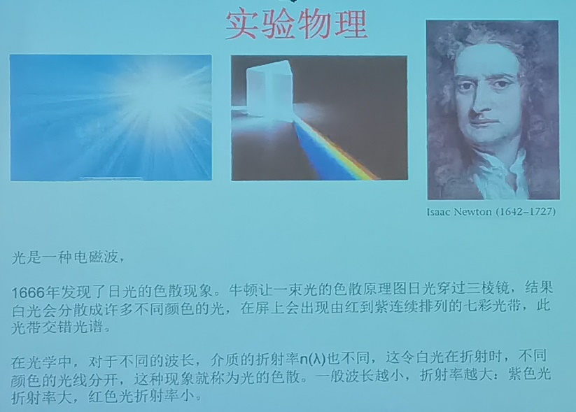 在第一部分,万教授从物理学中很重要的分支实验物理入手,从亚里士多德的实验引入,点明了“科学需要自洽”的重要命题;与此同时,从牛顿三棱镜分光引入,向我们介绍了人工白光的实现。