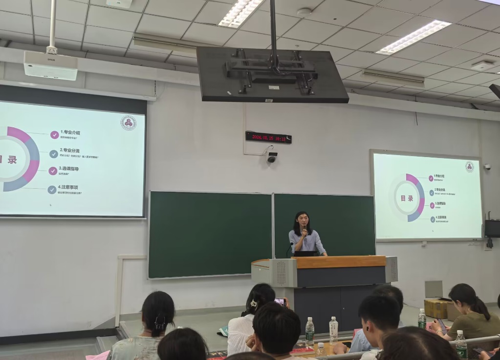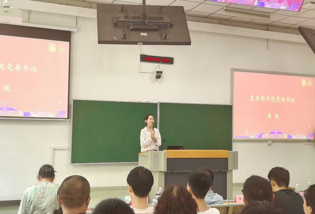 蒲婧翔介绍了书院情况。书院以“大先生”吴有训先生命名,秉承“精细有恒,训格为至”的院训,开展教育教学工作。她希望同学们突破学科限制,发挥潜力,实现“1+1>2”的效果。