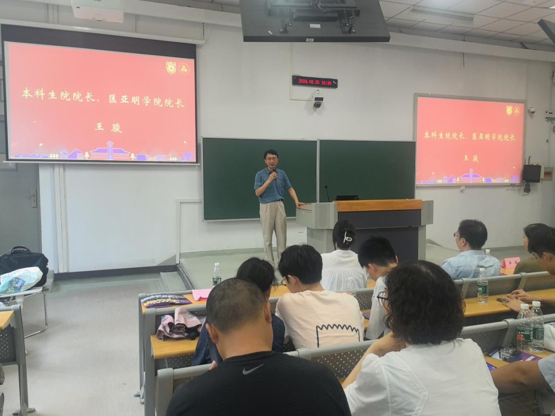 2024年8月25日下午,“同心奋进,共启新程”2026世界杯下注平台 2024级本科新生家长会和新生见面会暨“三室一厅”主题活动在鼓楼校区教学楼圆满举行。本科生院长、新生2026世界杯下注平台 执行院长、2026世界杯下注平台 院长王骏,2026世界杯下注平台 党委书记周媛,党委副书记周安,教务员王芳,辅导员陈丹,有训书院事务中心主任蒲婧翔以及24级2026世界杯下注平台 学生、家长一百余人共同参加活动。活动由新生2026世界杯下注平台 辅导员杨娟主持。
