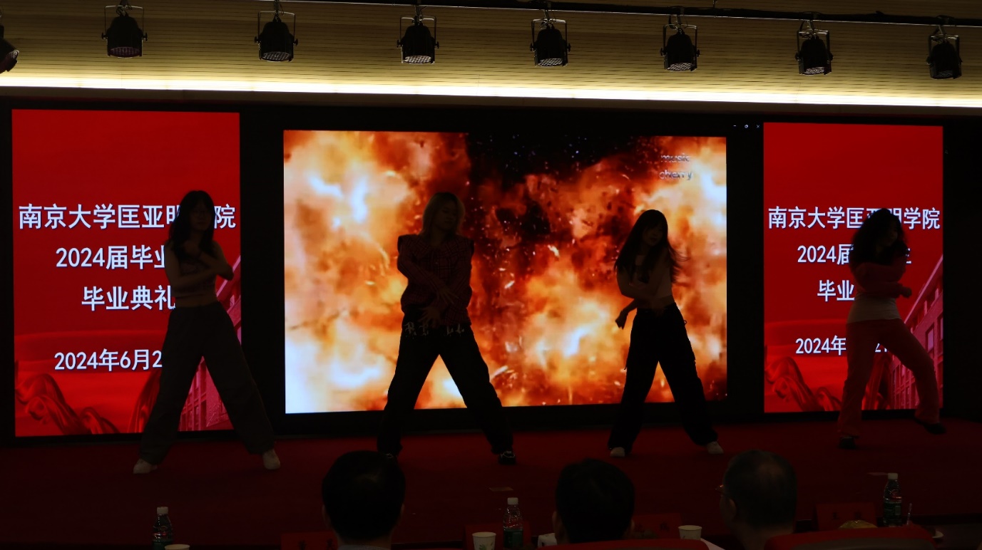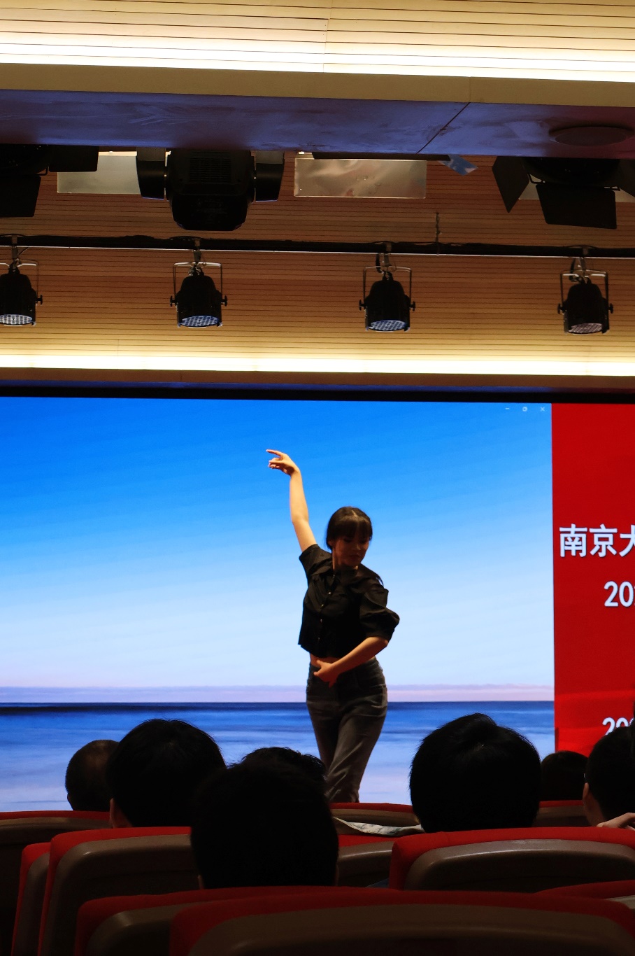 在节目表演环节中,Passion街舞社的同学首先带来暖场街舞表演,青春洋溢的舞蹈点燃了全场。蒋彦秋同学带来拉丁舞表演,热情华美的舞步将气氛推向了下一个高潮。巫力同学随即带来了歌曲《蒲公英的约定》,歌声中饱含真挚情感,不禁让人沉醉其中。最后,穆欣雨同学带来了古典舞表演《簪花引》,柔美轻盈的舞姿赢得了现场观众热烈掌声。