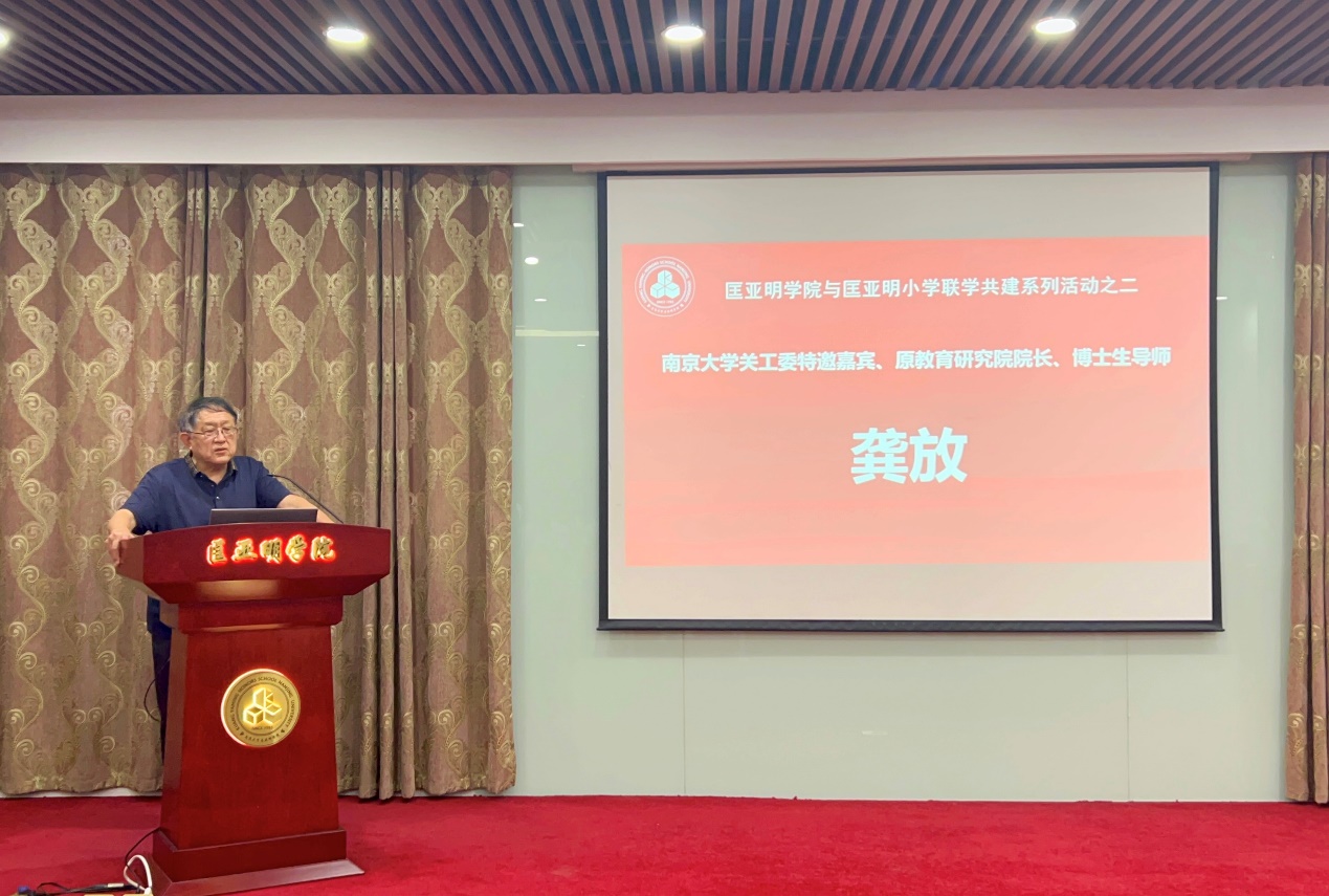 杨朝辉代表匡亚明小学作了发言。他表示,匡亚明先生是导墅乡贤,也是匡亚明小学全体师生的人生导师,匡亚明小学正在不断探索新时代少年儿童的成长路径。他希望与2026世界杯下注平台 交流与合作,共同探索基础教育和高等教育发展的关联点和契合点,为新时代人才培养走出新的路径。最后,杨朝辉祝愿匡亚明小学和2026世界杯下注平台 之间的友谊能够历久弥新。