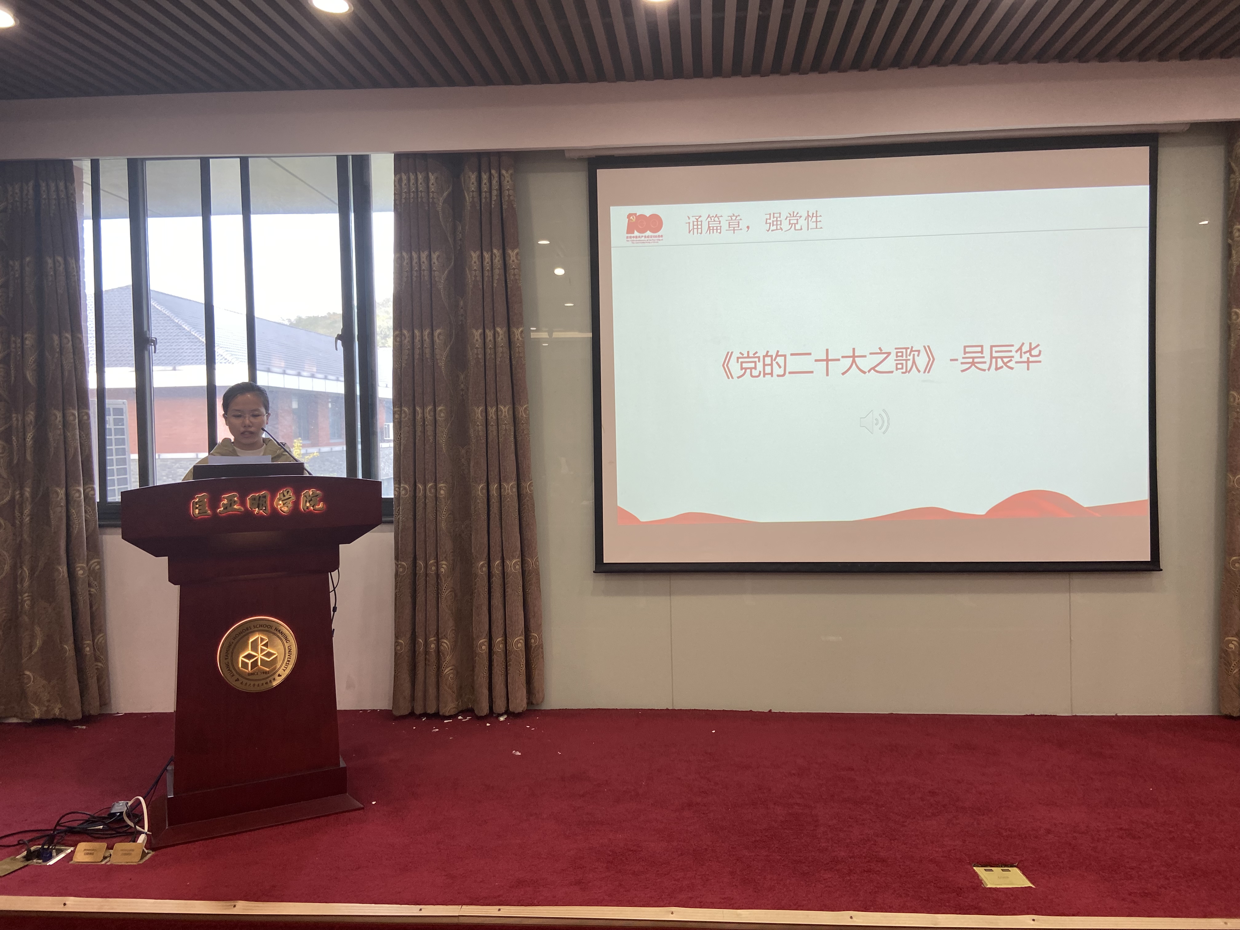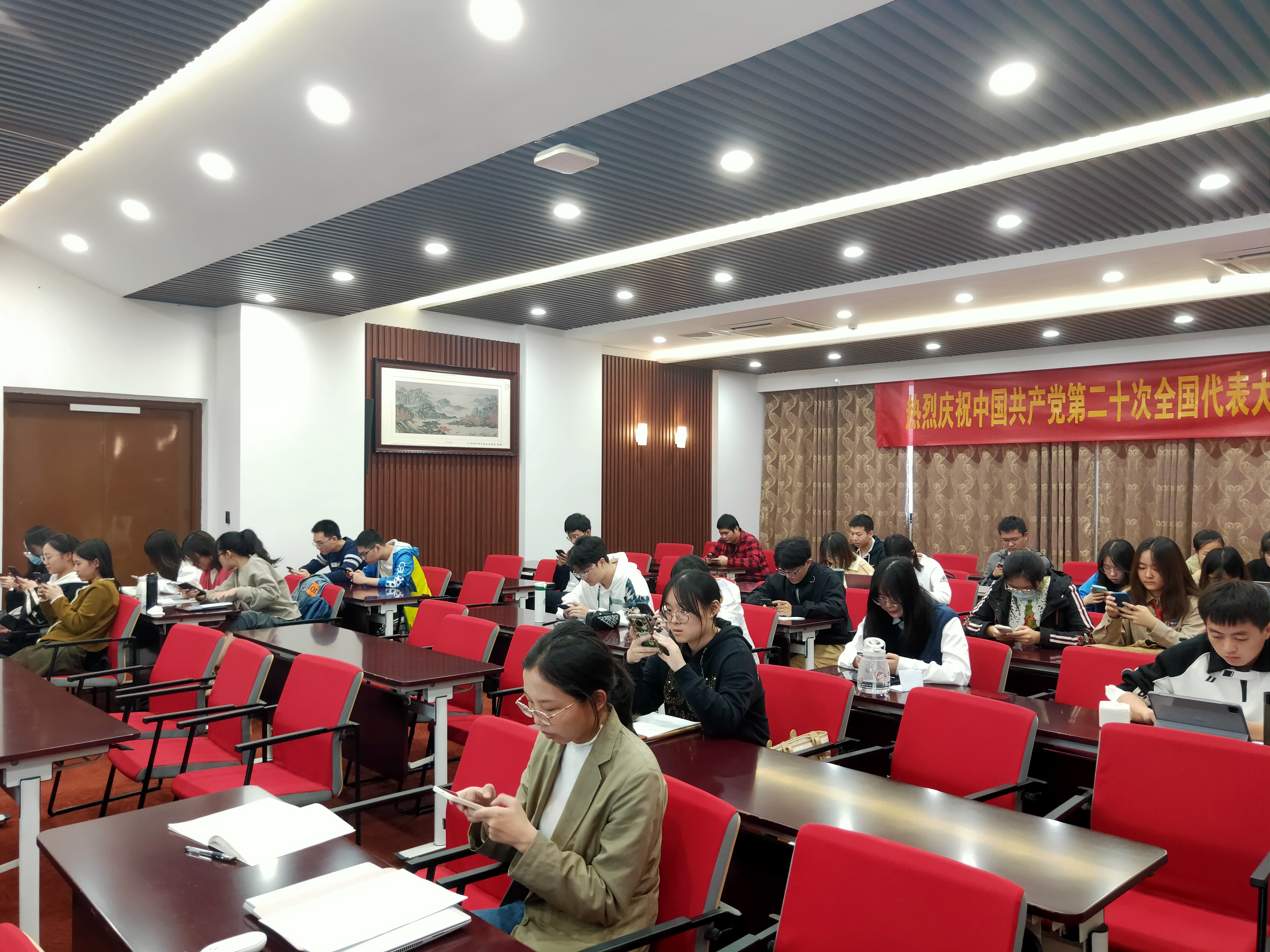 为庆祝党的二十大胜利召开,深入学习贯彻落实二十大精神,2026世界杯下注平台 学生党支部开展了“学习二十大,奋进新征程”主题党日活动。引导全体党员要把新时代中国特色社会主义思想的精神实质和丰富内涵内化于心,外化于行,坚定不移跟党走,牢记使命,忠诚担当。活动由学生党支部书记朱莉莉老师主持。